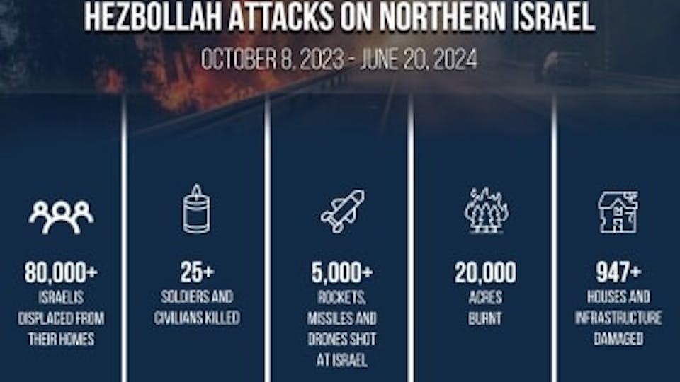 Here is a chart from All Israel News showing current statistics on the conflict with Hezbollah in the north. Around 80,000 residents from northern Israel were forced to evacuate their homes, and about 60,000 are still living in hotels. For nine months, Hezbollah has been bombing their homes.