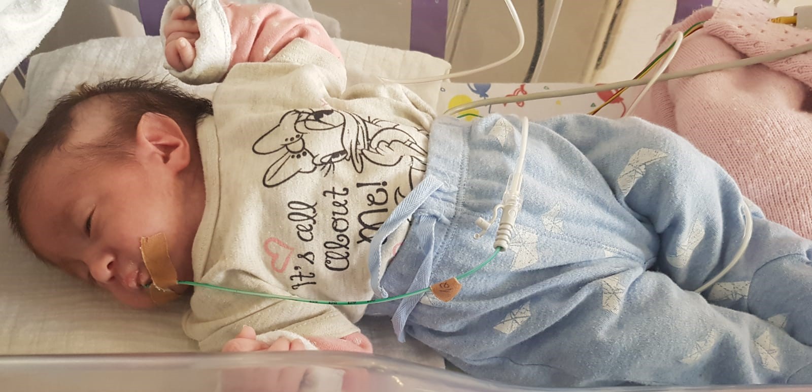 Nesia in Hebrew means "miracle of God". Nesia is indeed a miracle. She was born on Dec. 6, 2019 and weighed 2.3 kg. Sivan had done all the obligatory prenatal tests and there was no indication that anything was amiss. When Nesia was born, Sivan was told that her daughter had a genetic condition called Trisomy 18. It is a chromosomal abnormality that expresses itself in low birth weight, abnormalities in certain internal organs and some form of mental retardation. Many don't live beyond birth or even past the first month. Nesia was in the hospital for the first six weeks of her life and has been released to go home from the hospital with her parents, albeit with monitoring apparatus and a feeding tube. Nesia has proven to be a real fighter and Sivan is glad that she didn't know about her baby's condition while pregnant, as she might well have aborted. Nesia will need heart surgery as well as surgery on her digestive tract at a later time. Right now, Sivan and her husband have opted not to put their daughter through anything that isn't actually life-saving.