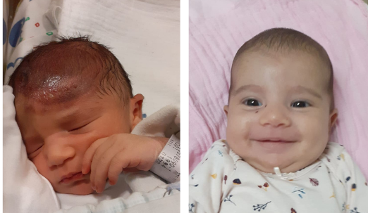 Yona was living with her boyfriend while they both studied at university. She thought all was well but noticed that she was sensitive to different smells and started being sick in the morning. She quickly discovered that she was pregnant. Her first thought was to have an abortion as she did not want to lose her boyfriend. Her parents, however, begged her not to take the baby’s life. They said they would support and help her by caring for the baby so that she could continue her studies. Despite her parents’ kindness, Yona worried about the finances and responsibility of a new baby. Contacting Be’ad Chaim, she met a supportive counselor who encouraged her with the pledge of baby items for the first year and emotional support. Her daughter Hannah was born in August in a very difficult birth during which both baby and mother suffered, and finally a C-section was performed to keep Hannah alive. In these photos, you can see the ‘then’ and ‘now’ pictures: at birth, Hannah’s head was damaged but is now miraculously and totally healed! What a beauty!