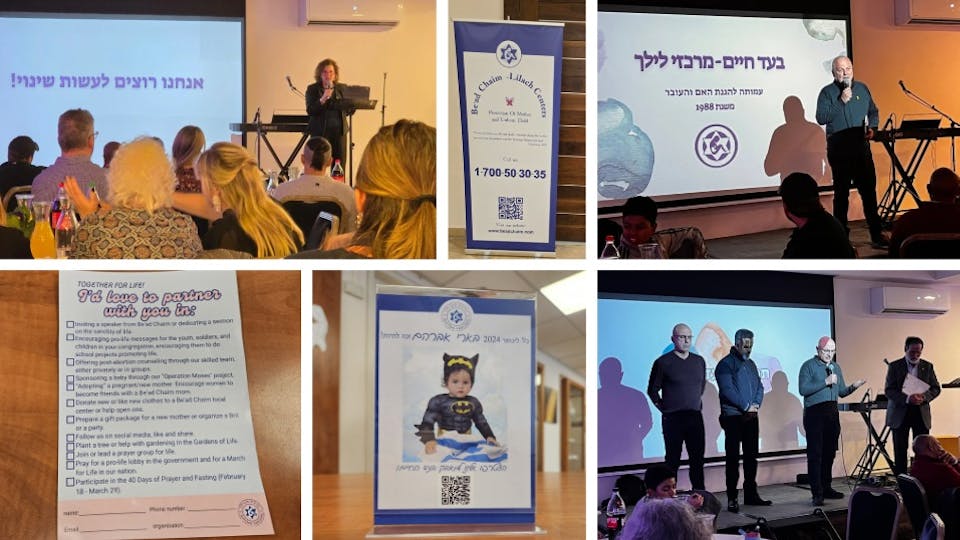Am 5. Februar feierte Be'ad Chaim den Segen, Tausende von Leben vor der Abtreibung gerettet zu haben. Etwa einhundertzwanzig Personen, darunter messianische Leiter aus dem ganzen Land und unsere Mitarbeiter, kamen zum Abendessen, zum Gottesdienst, zum Gebet und zu kraftvollen Zeugnissen für das Leben zusammen. Die Anbetung war berührend und brachte uns Gottes Liebe näher. Tony Sperandeo, der Vorstandsvorsitzende, hielt eine leidenschaftliche Rede, in der er auf die Dringlichkeit des Schutzes und der Wertschätzung jedes Lebens hinwies und angesichts der aus dem Gazastreifen zurückgekehrten Geiseln die hohe Wertschätzung Israels für Menschenleben betonte. Sandy Shoshani, die nationale Direktorin von Be'ad Chaim, berichtete über Statistiken zu Abtreibungen in Israel und die verschiedenen Projekte von Be'ad Chaim. Allein in diesem Jahr haben wir fast fünfhundert Babys zur Welt gebracht und derzeit sind über hundertfünfzig unserer Mütter schwanger. Seit Beginn des Projekts Operation Moses im Jahr 2006 haben wir über sechstausend Müttern und Babys geholfen. Miriam teilte ihr Zeugnis: Be'ad Chaim hat ihr vor dreizehn Jahren geholfen, als sie im Alter von sechzehn Jahren auf den Straßen von Tel Aviv in eine Krisenschwangerschaft geriet. Miriams Sohn Osher (was „Freude“ bedeutet) gesellte sich zu ihr auf die Bühne, als sie erzählte, wie viel Glück er ihr geschenkt hat. Miriam kam später zum Glauben und wurde vor drei Jahren als wunderbare, einfühlsame Beraterin für andere Frauen in Schwangerschaftskrisen eingestellt. Helen, eine Beraterin für Frauen nach einem Schwangerschaftsabbruch, erzählte von ihren Erfahrungen und betonte, wie wichtig es ist, Frauen zu helfen, sich von der Scham und den Schuldgefühlen zu erholen, die mit einem Schwangerschaftsabbruch einhergehen. Wir müssen in unseren Kirchen unbedingt ein sicheres Umfeld für die Heilung von Menschen mit gebrochenem Herzen schaffen. Auf die Zeugnisse folgten Gruppengebete an jedem Tisch und von der Bühne aus Gebete für das Leben durch messianische Leiter. Ziel des Abends war es, einander zu inspirieren, für den Schutz von Müttern in Krisen und für die ungeborenen Kinder zu beten und zu handeln. Lokale Gemeinden wurden aufgefordert, mit uns im Gebet zusammenzuarbeiten, lebensbejahende Botschaften in den Gemeinden zu verbreiten und Freiwilligen Möglichkeiten zu bieten, sich mit schwangeren und jungen Müttern anzufreunden.