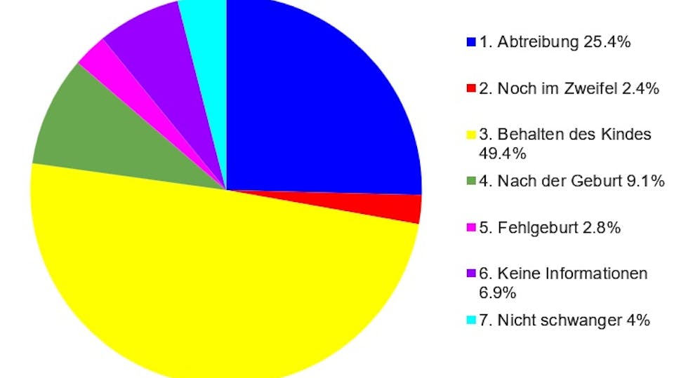 Wie Sie aus dieser Tabelle ersehen können, wollten fast 40 % der Frauen, die uns kontaktierten, abtreiben und weitere 25 % zogen eine Abtreibung in Betracht. Sie wandten sich an uns, weil wir mit unserer Werbung jeder Frau in einer Schwangerschaftskrise Hilfe anbieten.