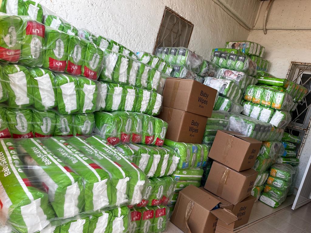Pañales que una organización donó tan generosamente para nuestras mamás necesitadas del sur.