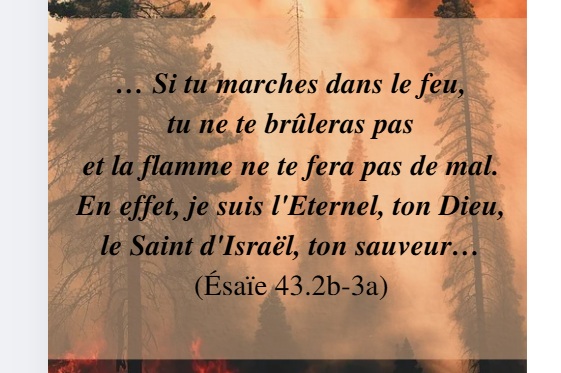 Récemment, ces versets ont pris une signification toute particulière. Le 30 avril, jour du souvenir en Israël, et le 1er mai, jour de l'indépendance, d'immenses feux de forêts ont fait rage dans la banlieue ouest de Jérusalem, détruisant 2 471 hectares de terrain. Il a fallu une centaine d'unités de pompiers et plus de vingt heures pour maîtriser l'incendie. Le feu était violent dans la région de Latrun (où se trouvent les Jardins de la Vie), ce qui a poussé notre jardinier Albert, à fuir avant qu'il ne soit trop tard pour évacuer. Dans la prière, il m'a été rappelé que même si le feu avait consumé les arbres plantés en mémoire des bébés à naître, la restauration des cœurs en deuil et la libération de la culpabilité avaient été accomplies et ne pourraient jamais être brûlées. Depuis leur inauguration en 2010, ces jardins ont apporté la guérison à des milliers de personnes, avec plus de 2000 arbres plantés en l'honneur des enfants à naître. Par miracle, les Jardins n’ont pas été touchés par l'incendie. Nous rendons toute la gloire à Dieu, pour la protection de ce lieu de mémoire face aux flammes.