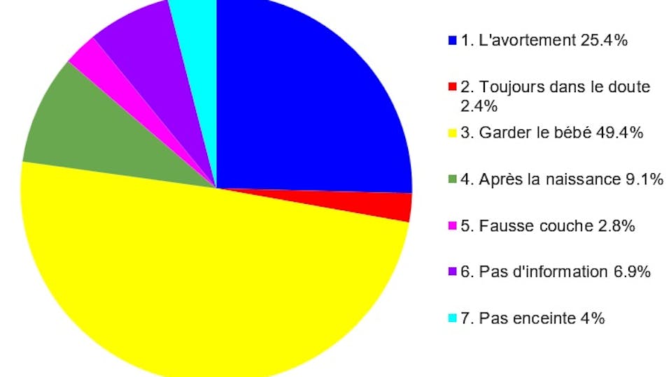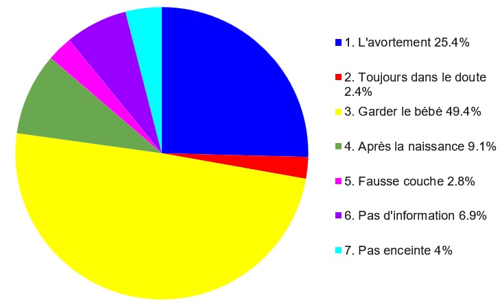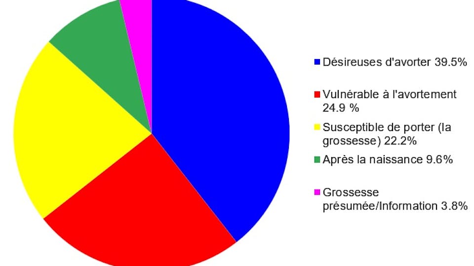 Comme vous pouvez le voir sur ce graphique, près de 40 % des femmes qui nous ont contactés cherchaient à avorter et 25 % envisageaient l'avortement. Elles nous contactent parce que notre publicité offre de l'aide à toute femme en situation de crise de grossesse.