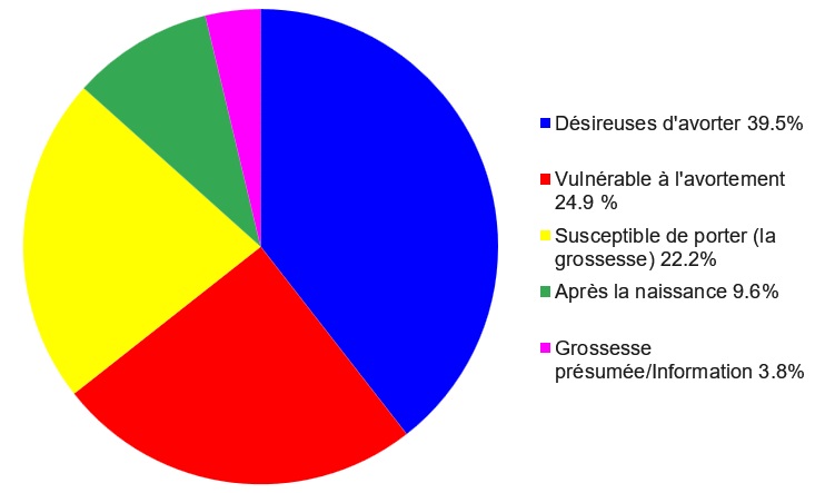Comme on pouvait s'y attendre, la majorité des femmes avaient entre 21 et 35 ans. L'argument des pro-avortement selon lequel les avortements sont principalement pratiqués par des adolescentes n'est pas recevable. Il est surprenant de constater que près de la moitié des femmes sont mariées ou ont un partenaire. Les statistiques gouvernementales indiquent également que près de la moitié des avortements sont pratiqués par des couples mariés. Environ 75% des femmes sont juives, issues de familles laïques, traditionnelles et religieuses.