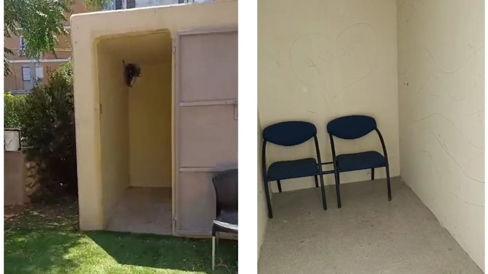 During the missile attacks, Agatha and her baby shared this tiny bomb shelter with the residents of 24 nearby apartments.