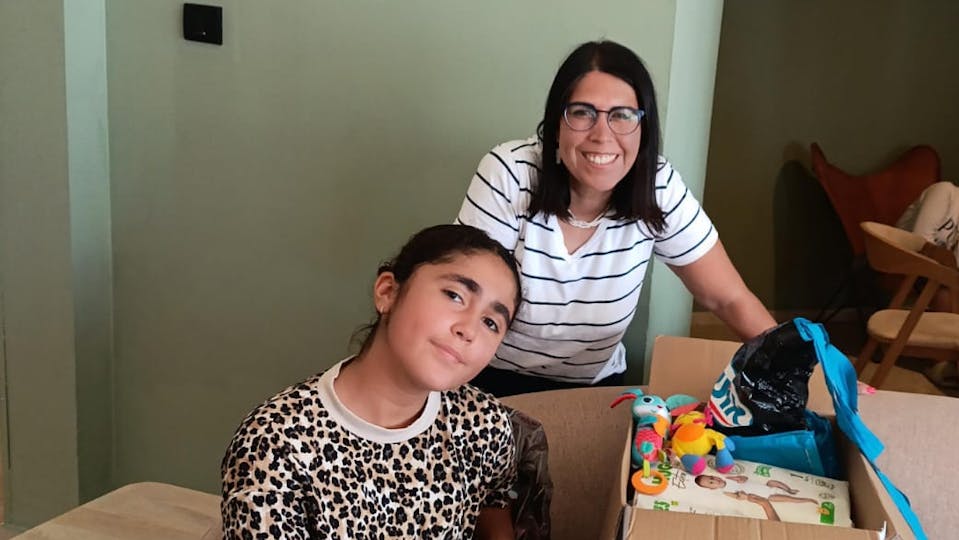 Counselor Yael and her daughter distributing “love gifts” in Ashkelon