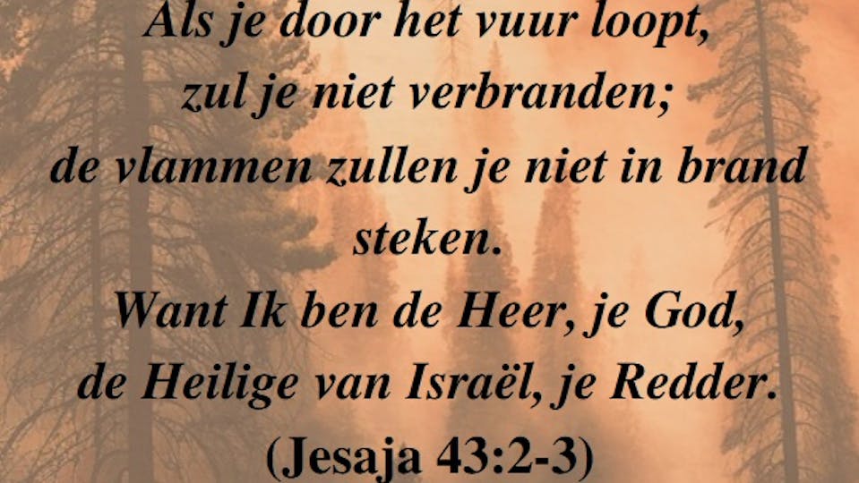 Onlangs hebben deze verzen een heel bijzondere betekenis gekregen. Op 30 april, de Israëlische dodenherdenking, en 1 mei, de Israëlische Onafhankelijkheidsdag, woedden er enorme bosbranden in de westelijke buitenwijken van Jeruzalem, waarbij 1000 hectare land werd verwoest. Er waren honderd brandweereenheden en meer dan twintig uur nodig om de brand onder controle te krijgen. De brand was hevig in het gebied rond Latrun (de locatie van de Levens Tuinen), waardoor onze tuinman Albert moest vluchten voordat het te laat was om te evacueren. In gebed werd ik eraan herinnerd, dat zelfs als de brand de bomen had verwoest die waren geplant ter nagedachtenis aan ongeboren baby's, het herstel van rouwende harten en de bevrijding van schuldgevoelens was volbracht en nooit verloren kon gaan. Het planten in de Tuinen heeft sinds de inwijding in 2010 duizenden mensen genezing gebracht. Er zijn meer dan tweeduizend bomen geplant ter ere van de ongeboren kinderen. Wonder boven wonder bleef de beboste tuin onaangetast door het vuur. We geven God alle eer voor het beschermen van deze herdenkingsplaats tegen de vlammen.
